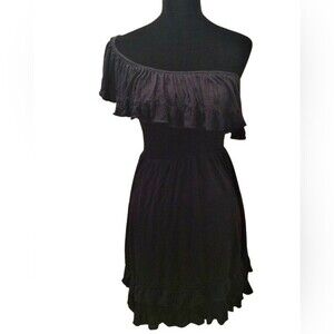 Anthro Jaloux Black ruffle one shoulder dress size small