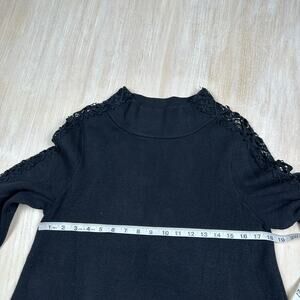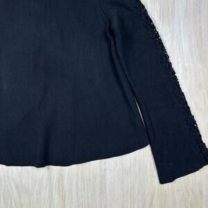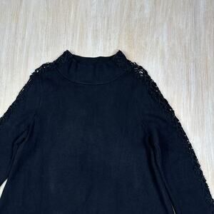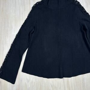 Anthro Knitted & Knotted Black Lace Sleeve Funnel Cashmere Blend Sweater Large