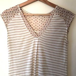 Anthropologie Little Yellow Button Daystripe Short Sleeve Tee - Striped Blouse / Tunic Top / Cap Sleeve