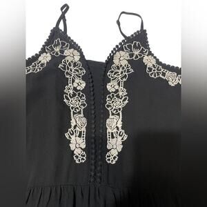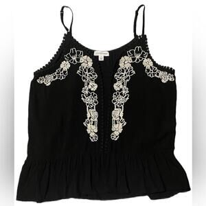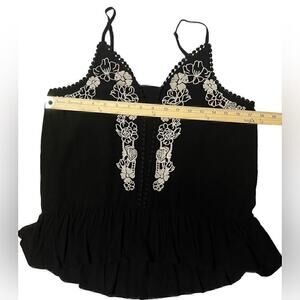 Anthro Love On A Hanger Floral Boho Chic Embroidered Peplum Cami Top Black Small