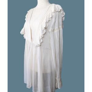 Anthropologie Maeve Boho Ivory & Silver Ruffled Long Sleeve Top
