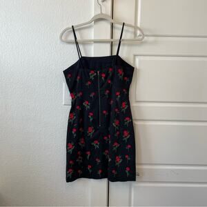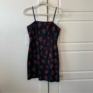 Chic black dress featuring vibrant red rose embroidery. Perfect for any occasion.