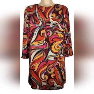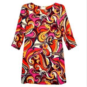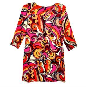 Anthro Maeve Dress Silk Flavia Swirl Shift Mini Pink Orange Mid Century Mod XS
