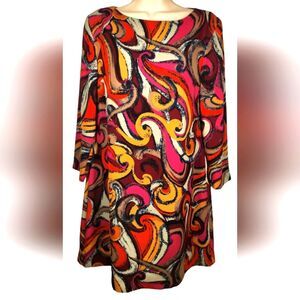 Silk Flavia Swirl Shift Short Red Pink Orange Mod Mid Century Modern