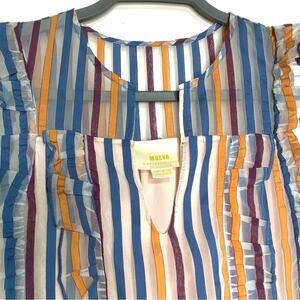 Anthro Maeve Elisabetta Striped Sleeveless Ruffle V Neck Top 2