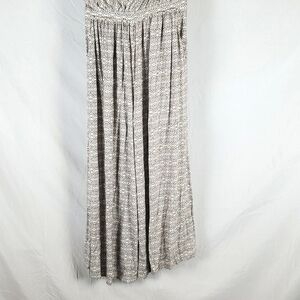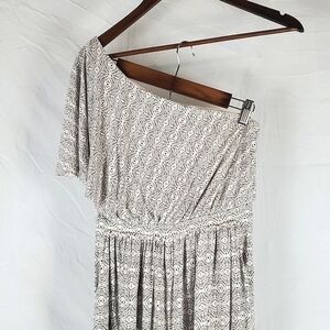 Anthropologie Maeve Jamie One Shoulder Jumpsuit. Black and Ivory geometric southwestern pattern. Ruffle sleeve. Great condition, some minor wash wear. Size x-small.