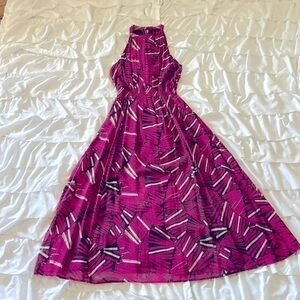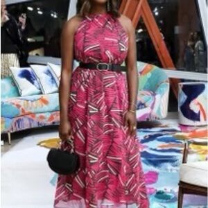 With a halter neck and a tropically-inspired motif, this head-turning maxi dress is the perfect pick for your next occasion. Viscose Halter neck Maxi silhouette Back button Pullover styling Machine wash