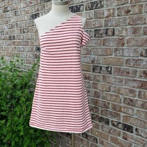 Anthropologie Maeve Marketa One Cold Shoulder A-Line Striped Dress