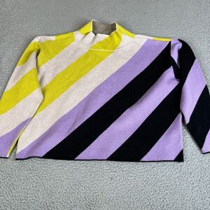 Anthro Maeve Sweater Womens S Purple Black Yellow Carys Stripe Mock Neck Top Mod