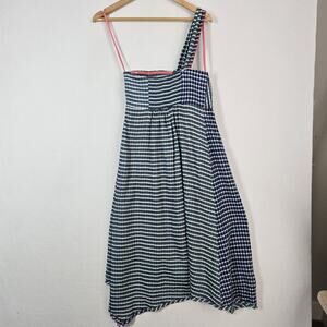 Anthro Maeve Waverly Midi Plaid One Shoulder Dress sz 2 Blue Multi Hanky Hem