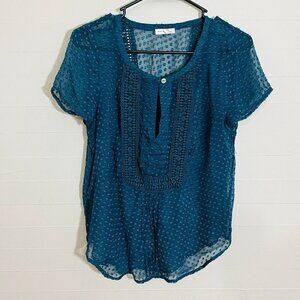 Anthro Meadow Rue Grassland Teal Swiss Dot Blouse SZ S