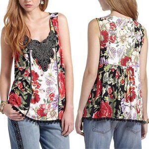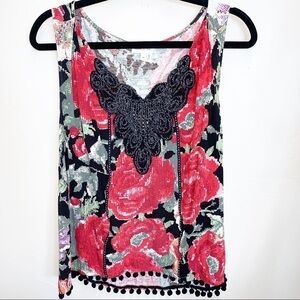 Anthro Meadow Rue Pixelated Floral Pom Pom Tank - XS