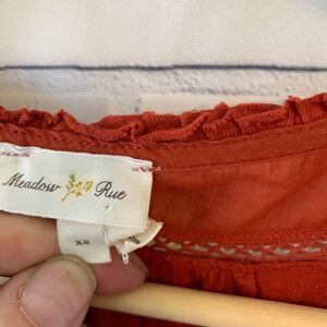 Anthro Meadow Rue Chennai Orange Roll Sleeve Top