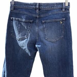 Anthropologie MiH The Phoebe Slim jeans, size 26. Mid rise, slim slouchy leg. “Nineties patch” left knee, black denim.