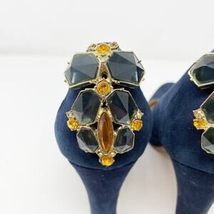 Anthro Miss Albright Navy Blue Suede Almond Toe Pumps Size 8.5 Rhinestone Accent