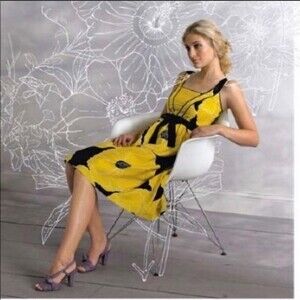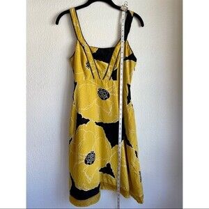 Anthro Moulinette Soeurs Brighter Seasons Mustard Floral 100% Silk Dress -Size 0