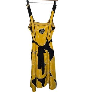 Anthro Moulinette Soeurs Brighter Seasons Yellow Black Floral Silk Dress Size 4