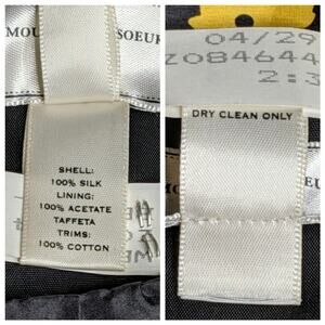 Materials: 100% silk; Lining: 100% acetate; Trim: 100% cotton