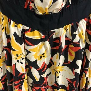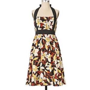 Gorgeous dress for Anthropologie by Moulinette Soeurs. Yellow floral design. Black halter straps. Pinup style. Great for special occasions or date night. EUC. Fully lined. 100% silk. Perfect fall dress. Lightweight.