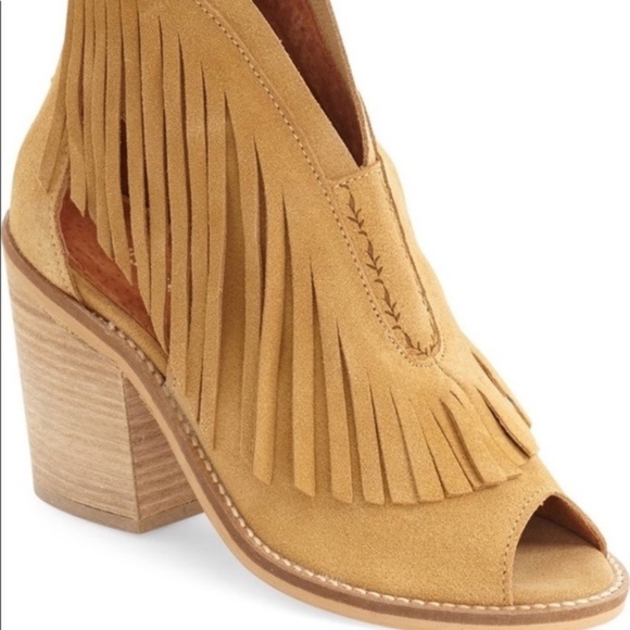 Anthro Musse & Cloud Galia Boho Suede Fringe Bootie Tan 41