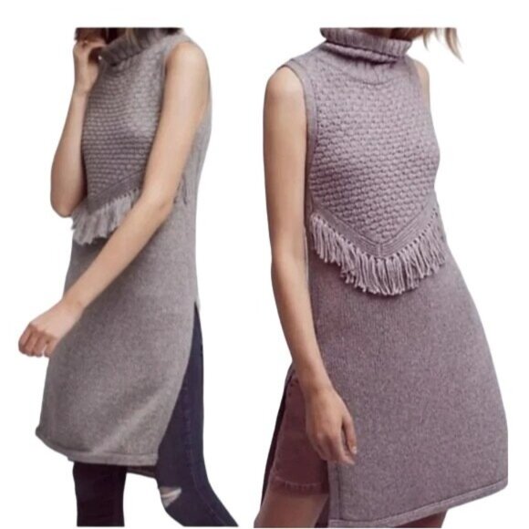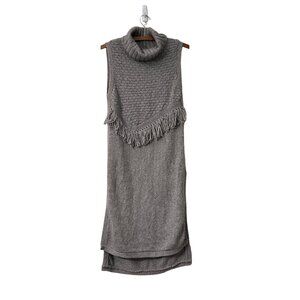 Anthro Nomad Morgan Carper Gray Fringe Sleeveless Side Slit Tunic Sweater M