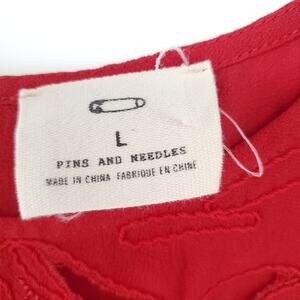 Anthro Pins + Needles Womens L Red Boho Floral Embroidered Laser Cut Tank Blouse