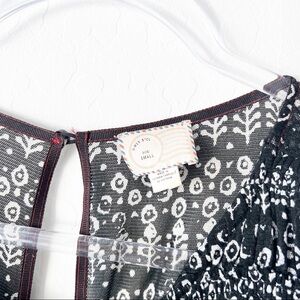 Anthro Postage Stamp Women's Mesh Fit and Flare Mini Dress Black White Print Sm