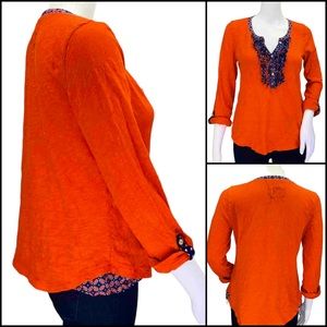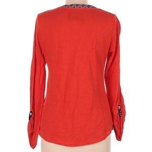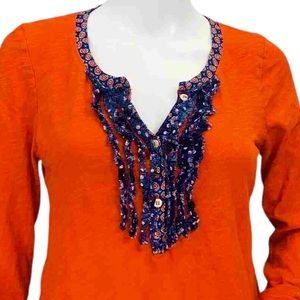 Anthro Postmark Reddish-Orange Mixed Media Polka Dot Ruffle Henley Tee T-Shirt