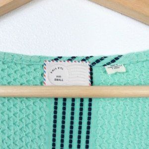 Anthropologie Postmark Striped Peplum Sweetheart Top Mint Green Navy Blue