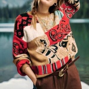 Anthro Rachael Sweater Patchwork knit crew multicolor bohemian sweater