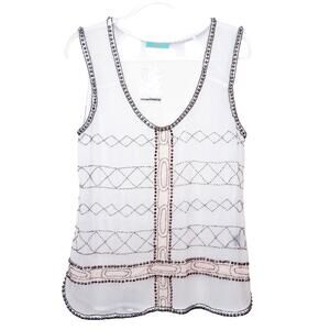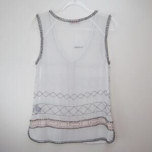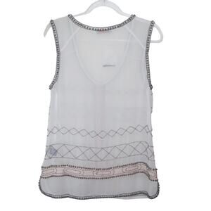 Anthro Rio Bazaar White Beaded Blouse Boho Small Festival Hippie