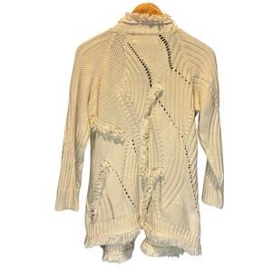 Anthro Rosie Neira Cream Fringe Cardigan Sweater - size Small