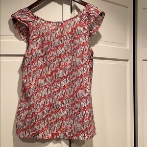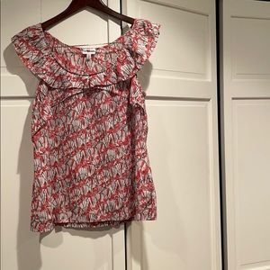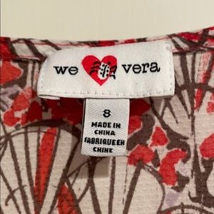 Gorgeous We Love Vera blouse! Purchased at Anthropologie. Sweet scoop neckline with ruffled detailing! Cotton and silk blend fabric!