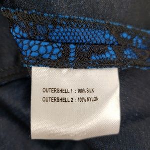 Deep blue silk with black Lace overlay and sheer chiffon yoke and back