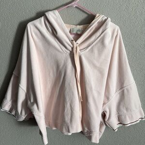 Anthro Saturday Sunday Cropped Velour Hoodie pink medium