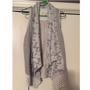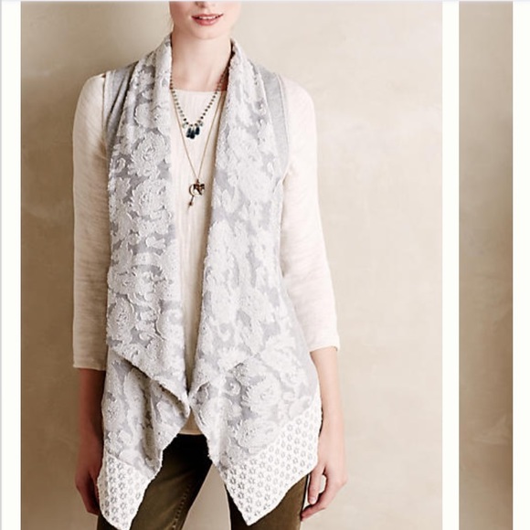 Saturday/Sunday Draped Jacquard Vest from Anthropologie - size XS but I'm a medium and it fits me fine. Bought off here, no flaws found.