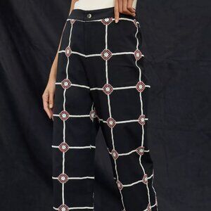 Anthro Seen Worn Kept Sold Out Black Embroidered 100% Cotton Joggers Size XS
