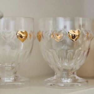 ❤️Elegant clear glass goblets with gold accents. Perfect for any occasion. An hourglass silhouette defines this set of handblown glasses, refined with scalloped detailing and handpainted icons.