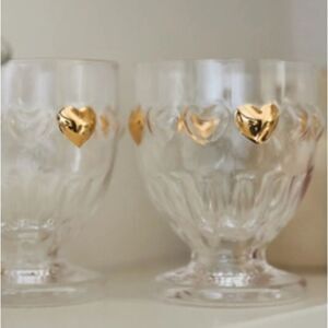 ❤️ Anthro Set of Clear Glass Goblets with Gold Accents | NIB
