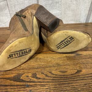 Anthro Seychelles Cognac Brown Distressed Leather Bootie w/Brass Buttons Size 9