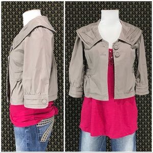 Old school Anthro. Cotton/spandex Sateen woven fabrication. Swing style, two button closure, 3/4 sleeves, excellent condition. Meaurements are approximate and taken with the garment laid flat and unstretched: 19” length, 18” armpit to armpit.