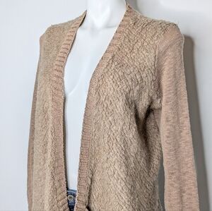 Anthro Sleeping On Snow tan cream cotton wool blend open cardigan sweater S