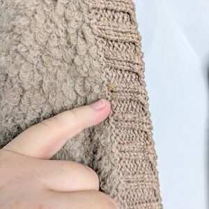 Anthro Sleeping On Snow tan cream cotton wool blend open cardigan sweater S. Cotton, wool, nylon, acrylic, mohair blend. Fuzzy on the front. Pockets. One small stain, haven't tried removing (see photo)