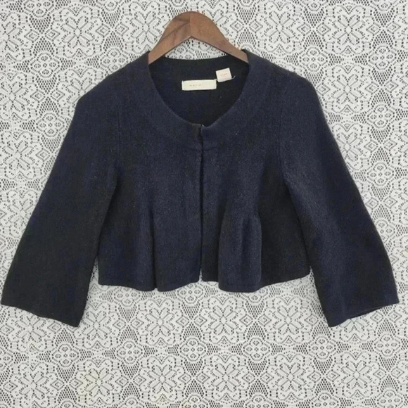 Anthro Sleeping on snow wool angora bell sleeve black sweater cardigan women's