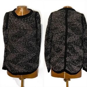 Anthro Sparrow Black & Pink Knit Crewneck Sweater Size Small