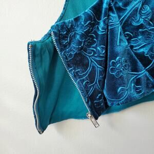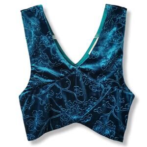 Staring At Stars from Anthropologie Teal Blue Velvet Crop Top Size M
