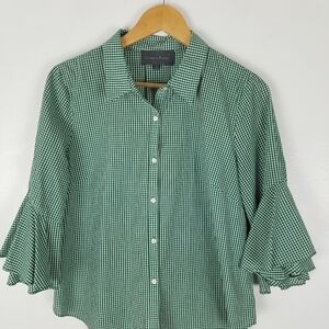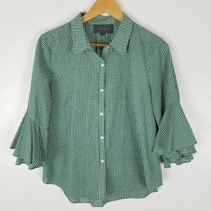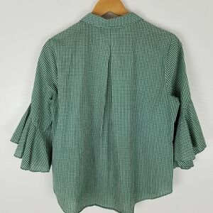 Anthro Sunday in Brooklyn Ponderosa Green Gingham Flutter Sleeve Blouse M