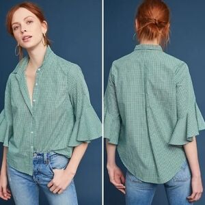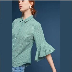Anthro Sunday in Brooklyn Ponderosa Green Gingham Flutter Sleeve Blouse