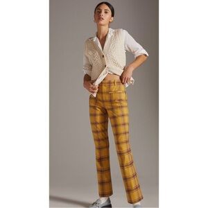Anthro The Essential Slim Kick Flare Pants in Yellow Motif Sz. 4