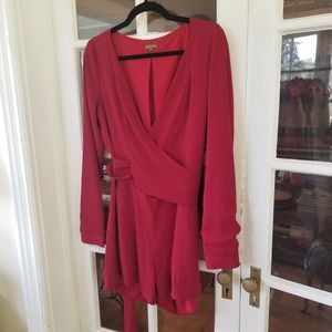 Beautiful long sleeve, wrap style romper in a perfect for fall and winter cranberry/burgundy color. This piece is dying to be styled again and worn to that event you have this season!